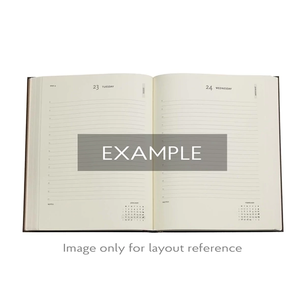 Com capa dura no formato midi, medindo cerca de 5 x 7 polegadas (aproximadamente 12,7 x 17,8 cm), a agenda oferece o equilíbrio ideal entre portabilidade e espaço para anotações. Seu layout diário "Day at a Time" dedica uma página para cada dia, proporcionando amplo espaço para registrar compromissos, ideias ou até mesmo um diário pessoal.