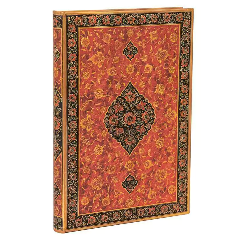 Descubra o Diário Paperblanks Layla Midi, um caderno que traz consigo a rica herança cultural da literatura persa. Inspirado em uma encadernação do século XVIII que originalmente abrigava o Khamsa do poeta Nizami, este diário é uma verdadeira obra de arte.