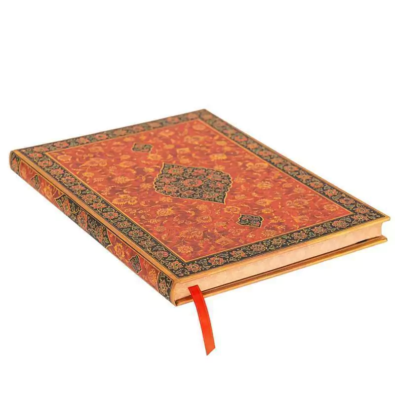 Este design é inspirado em uma encadernação do século XVIII que originalmente abrigava o Khamsa (os Cinco Tesouros) do poeta persa Nizami. Consistindo em cinco longos poemas narrativos, o volume é uma coleção de romances medievais que se baseiam em temas de amor não correspondido, complementando a rica complexidade desta capa botânica.