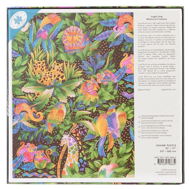 O Tema: Laurel Burch foi uma artista que criou temas brilhantemente coloridos, vibrantes e comoventes com tinta e papel, temas que inspiraram a capa deste livro. Para este projeto Jungle Song, os personagens originais de Laurel Burch, folhagens e outros detalhes foram adaptados por um artesão japonês para criar uma nova pintura em aquarela.